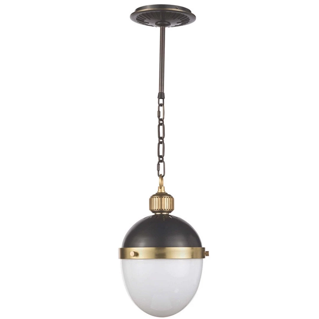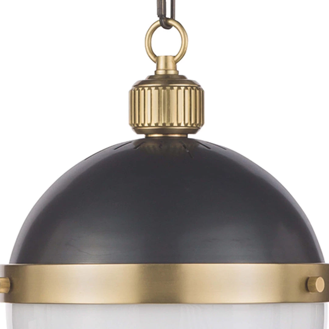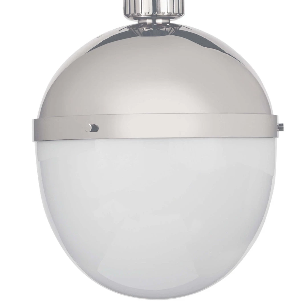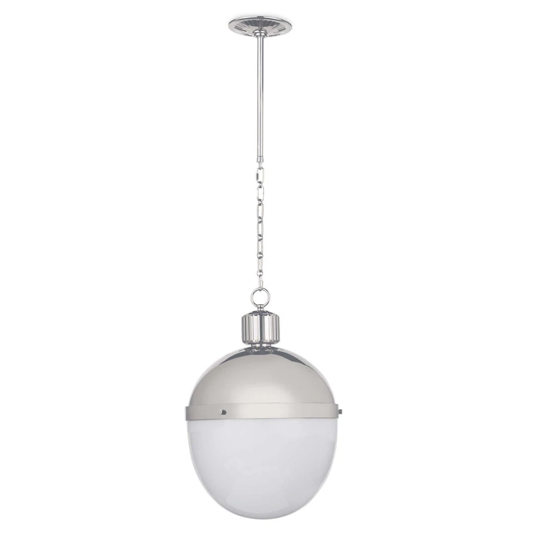 Features a bold collaboration of metal and frosted glass—suspended by an extendable pipe and chain for a versatile integration into any aesthetic. Available sizes in small, medium, and large.