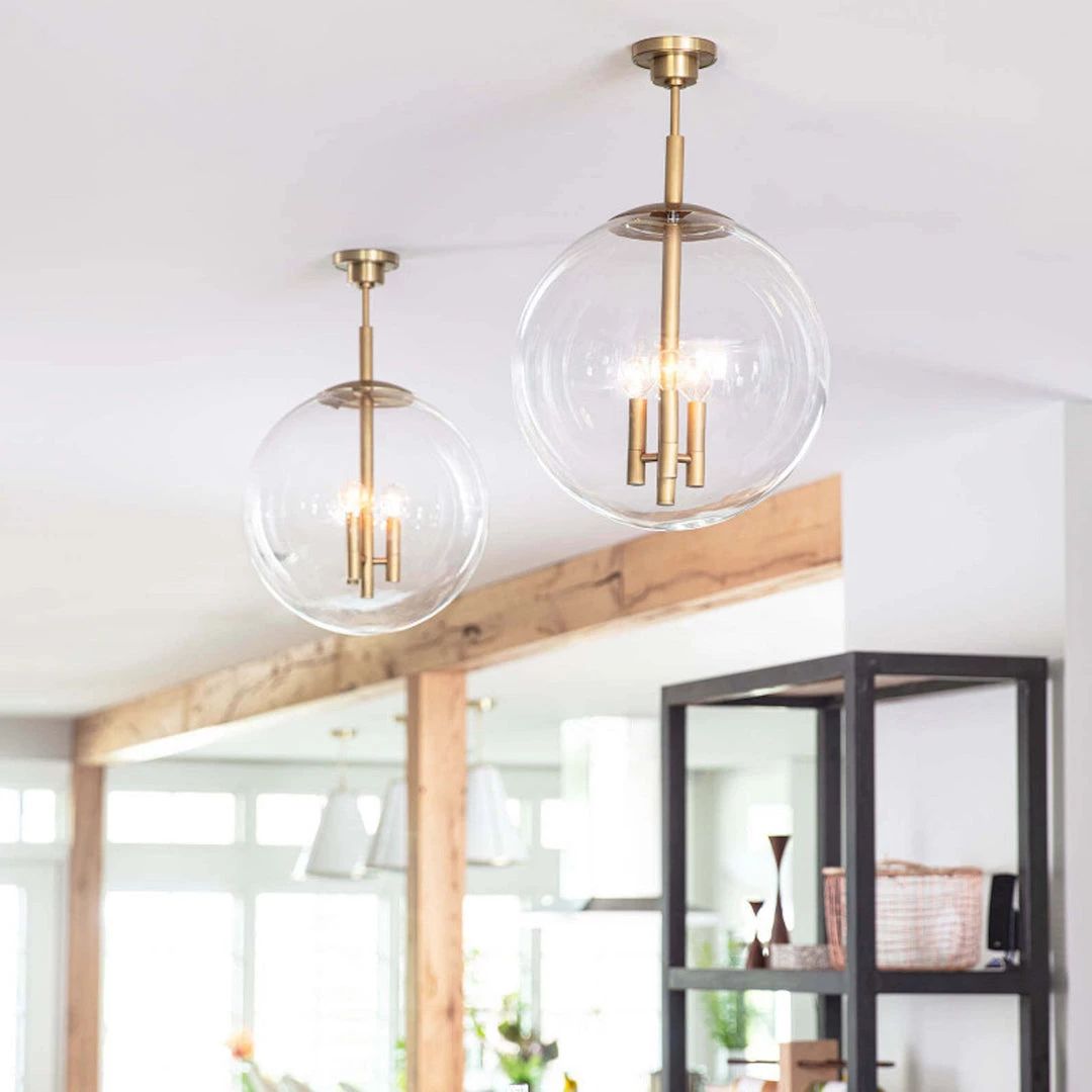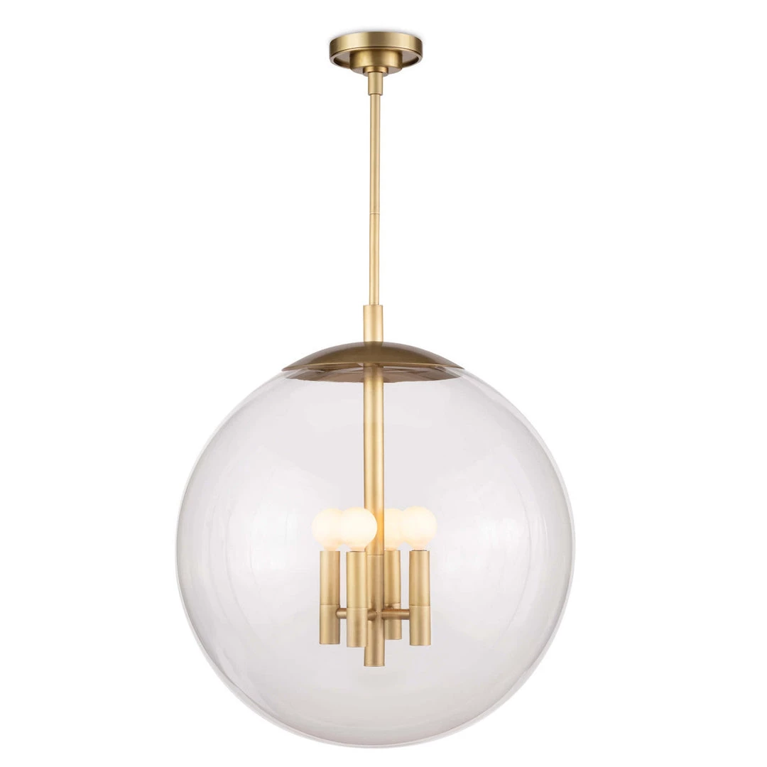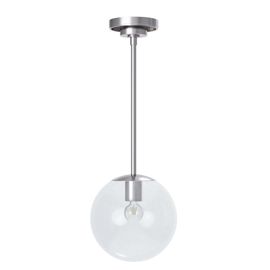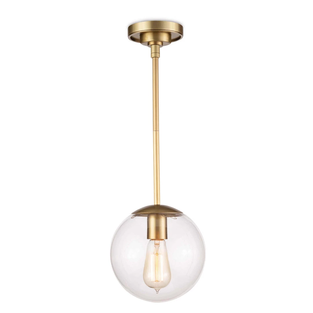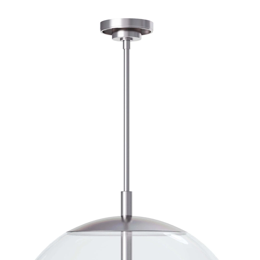 The clear glass shade acts as a barely-there surround on the metal rod, column and arms. The metal cap adds a refined finishing detail.  Available sizes in extra small, small, medium and large. Polished Nickel and Natural Brass Finish.