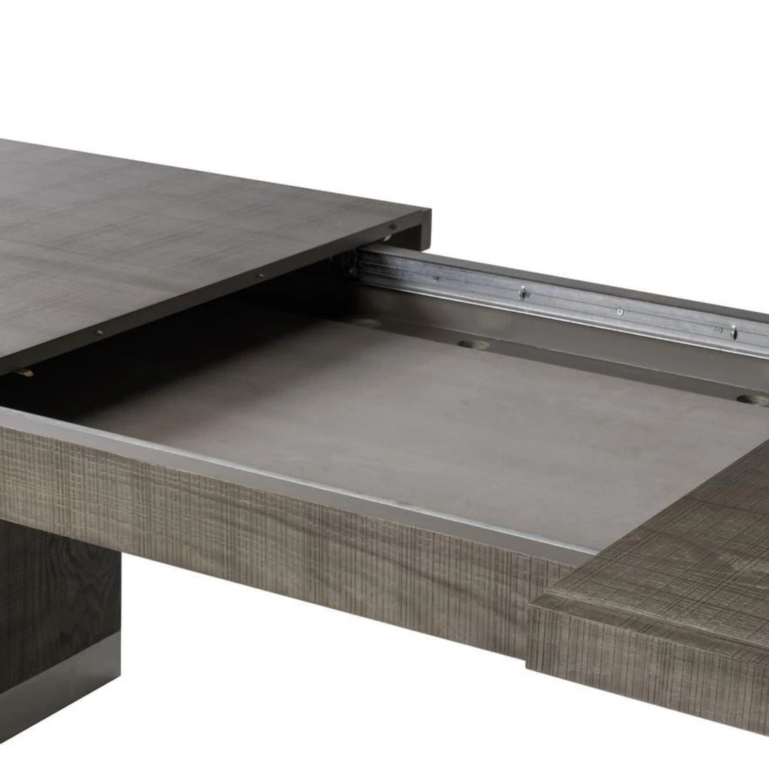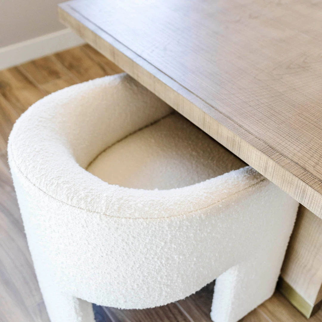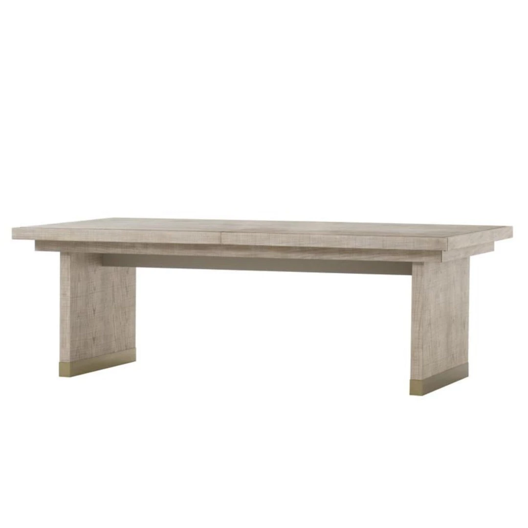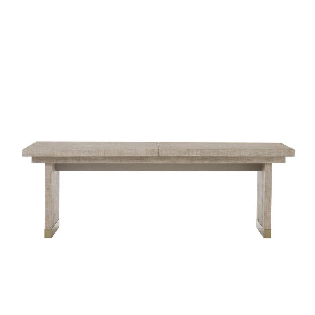 Feast your eyes on this extendable dining table, where elegant parson forms, fine lines, and textured parchment finishes give way to retreat living. This light and breezy table lend itself to long lazy brunches and dinner parties with family and friends.