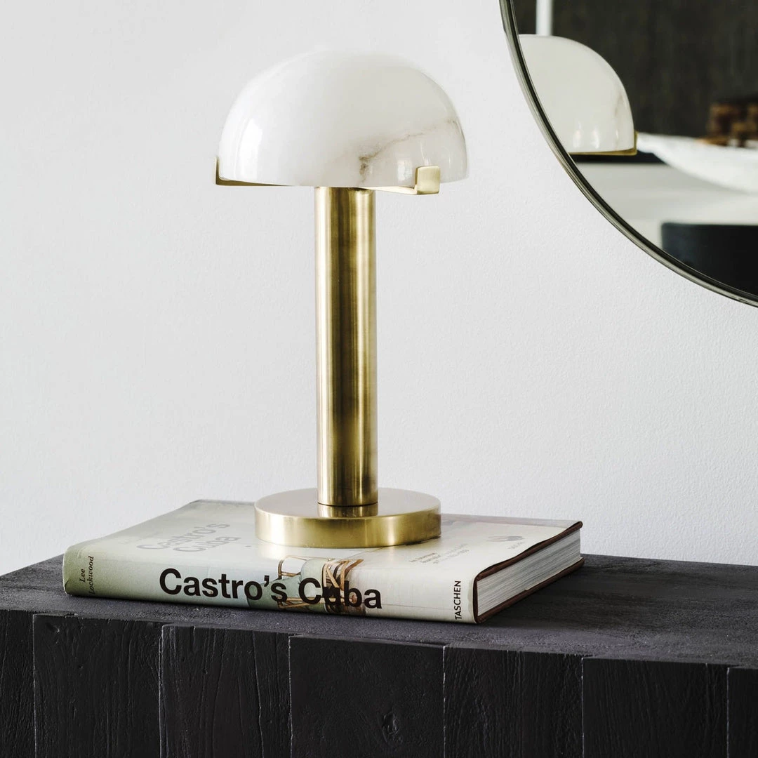 Antiqued metal base. 6′ cord length. Whitestone shade.