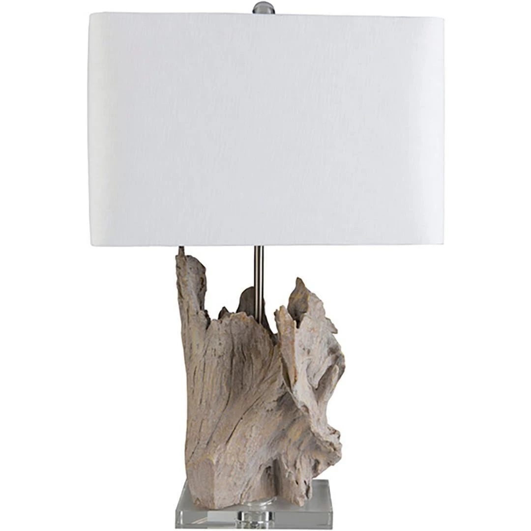 Table Lamp, Hand Finished Composition Body, White Linen Shade, Crystal Base, Crystal Finial