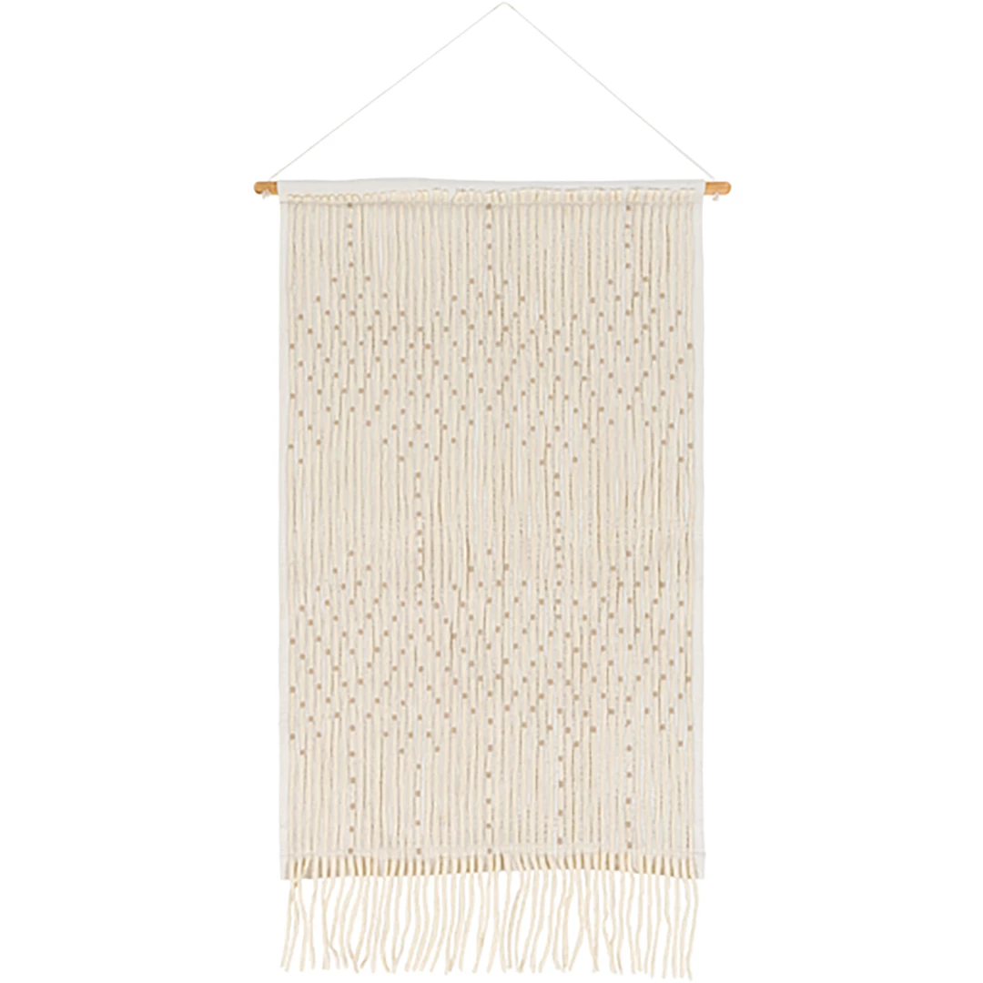 Main: 100% Cotton, Rod: 100% Wood, Woven, Fringe, Embroidered – Hand, Colors: White, Cream, Khaki, Made in India