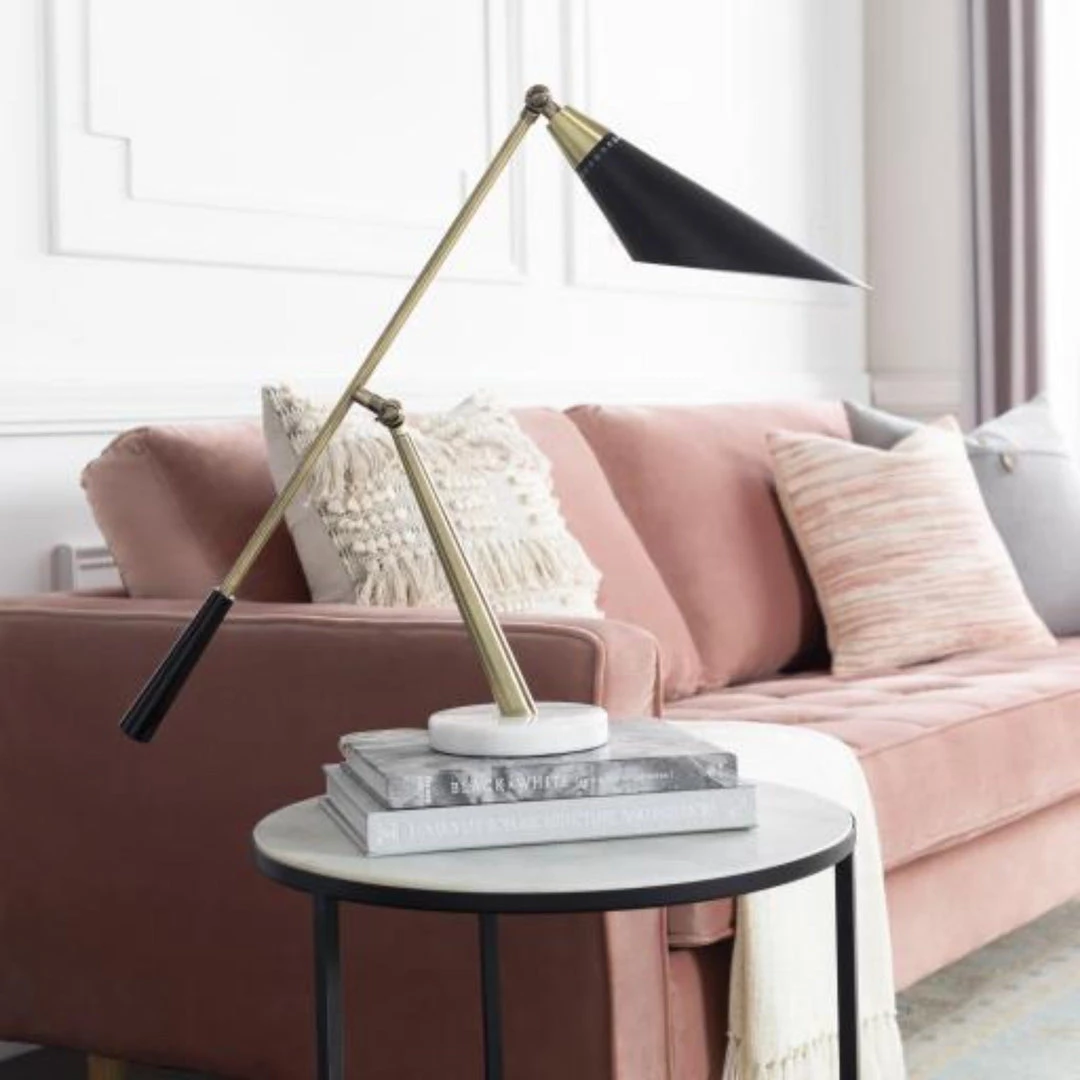 Table Lamp, Antiqued Metal Body, Black (TPX: 19-5708) Metal Shade, Marbled Marble Base, UL CUL Certified