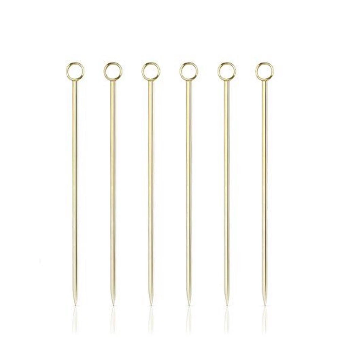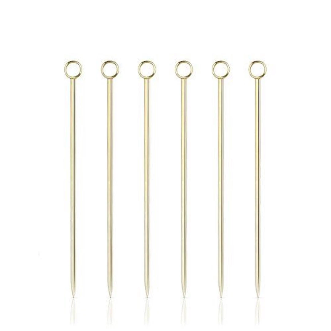 Pick your poison. Each gold cocktail pick in our classic set of six is finished with a small steel ring, ideal for propping an olive in your martini or a brandied cherry in your Manhattan. Set of 6, 304 stainless steel, Polished gold finish and Hand wash only.