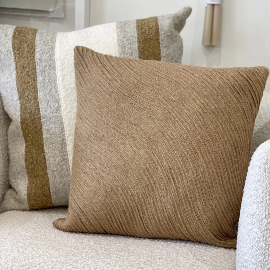 The Samba Pillow is the perfect natural touch to your home. It has a natural cotton cord stitched in a smooth wave pattern on the front. This pillow is filled with a high-quality down insert for maximum comfort and shape. The cover can be removed for cleaning by a concealed zipper. (Pairs well with Sam Pillow and Cairo PIllow, but are sold separately)