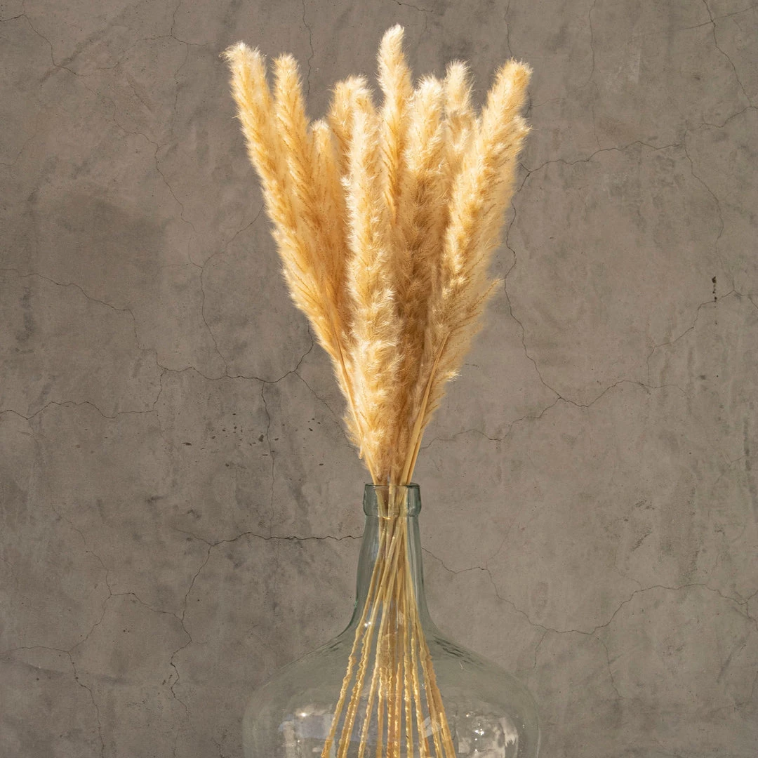 Our natural Pampas Grass adds texture and height to any space. Grass will need to be fluffed to obtain maximum fullness. Shedding will occur during this process due to the natural manner of the grass. We recommend fluffing/styling in an outdoor space and spraying your Pampas Grass with hairspray to prevent future shedding. Color and sizes may vary due to the natural unique essence of each Pampas reed.