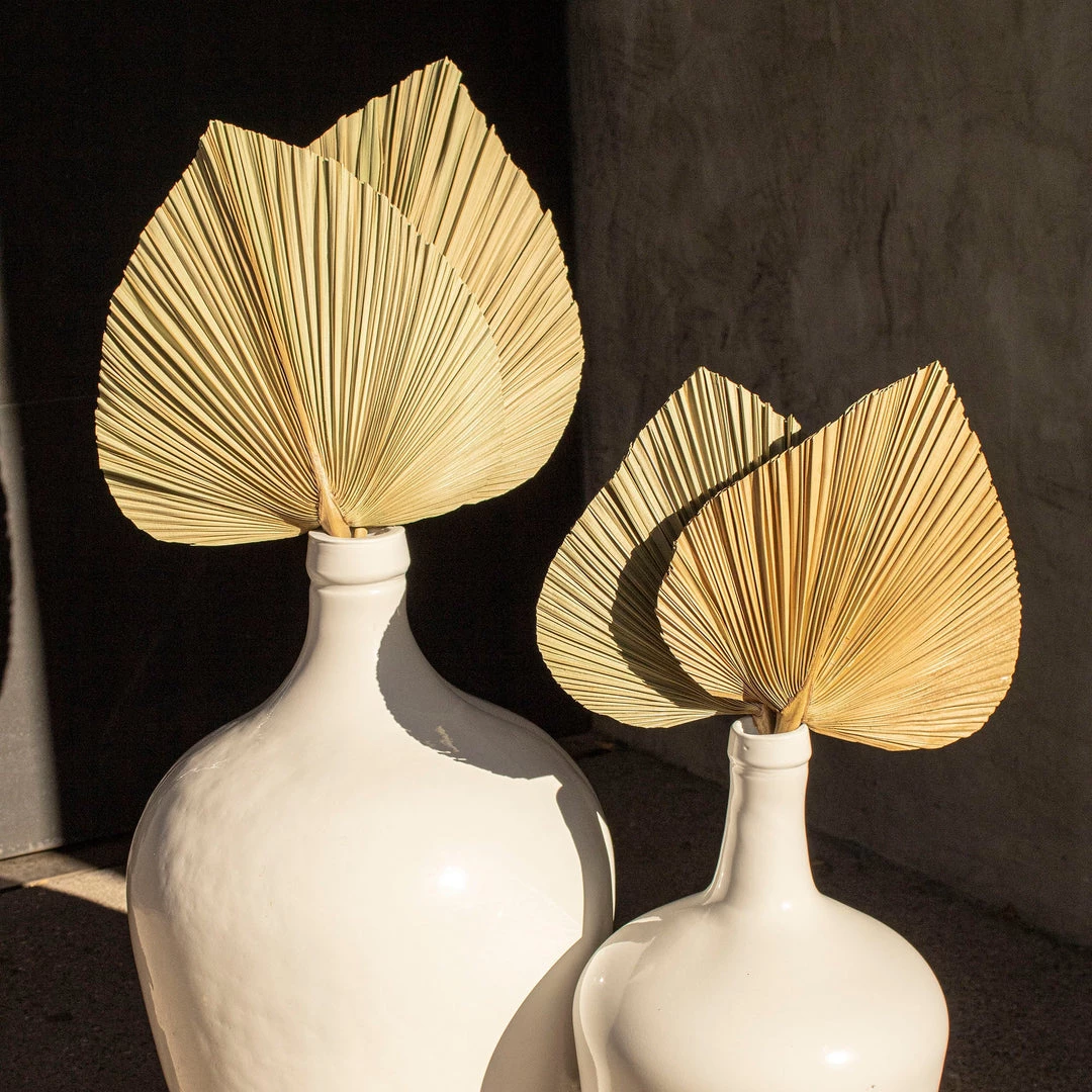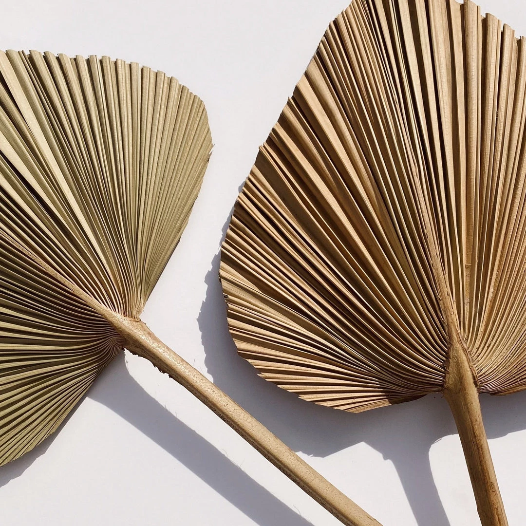 Set contains 2 pieces. This dried natural bunch of spear cut palm makes the perfect home or event decor. They look stunning on their own or can be added to floral arrangements to add height and texture.