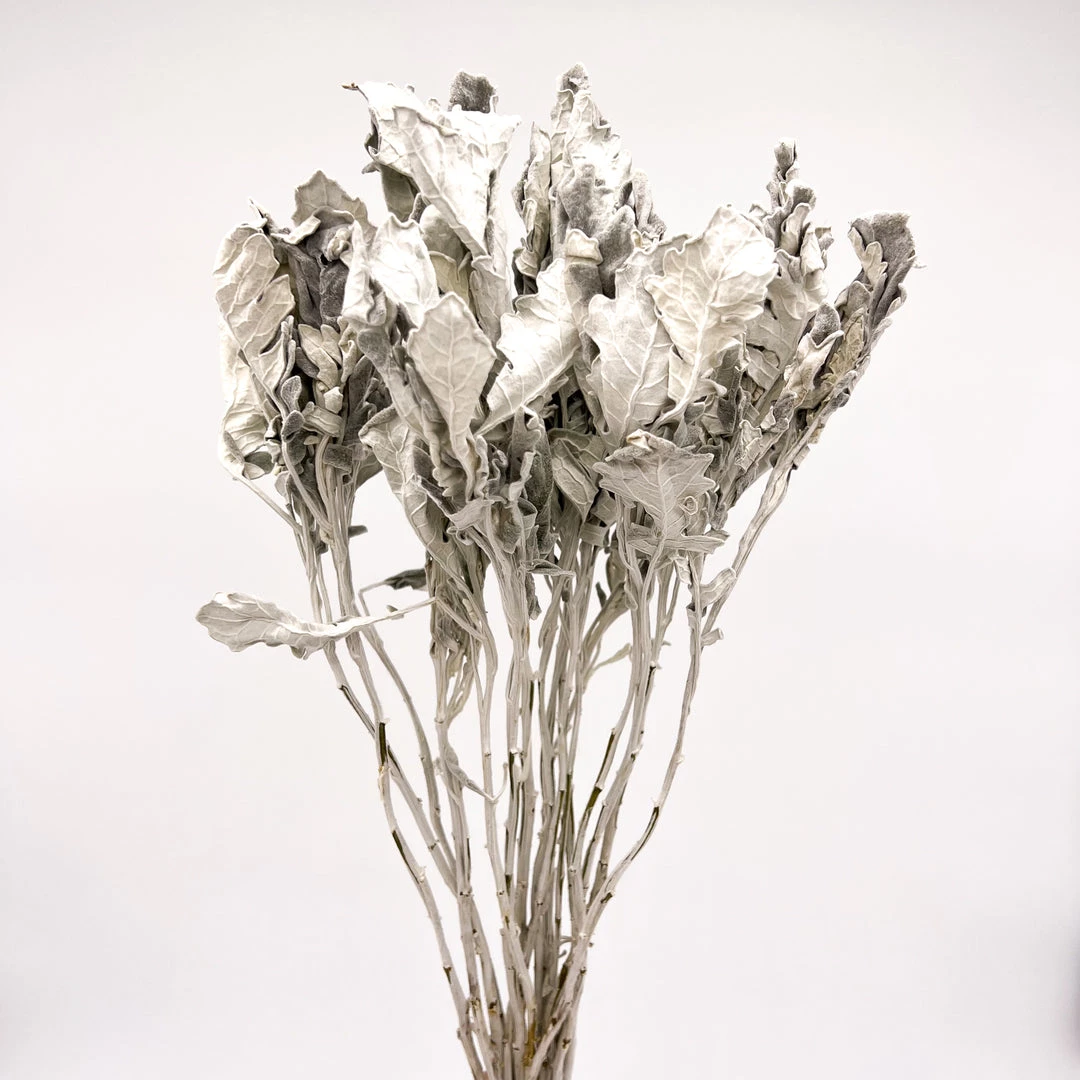Jacobaea Maritima is a bushy perennial or subshrub used for its spectacular foliage. It has silvery, finely textured dissected leaves with a wonderful lace appearance. Use this beautiful dried botanical in any vase or flower arrangement. Colors are varied and are also suitable for bouquet packaging