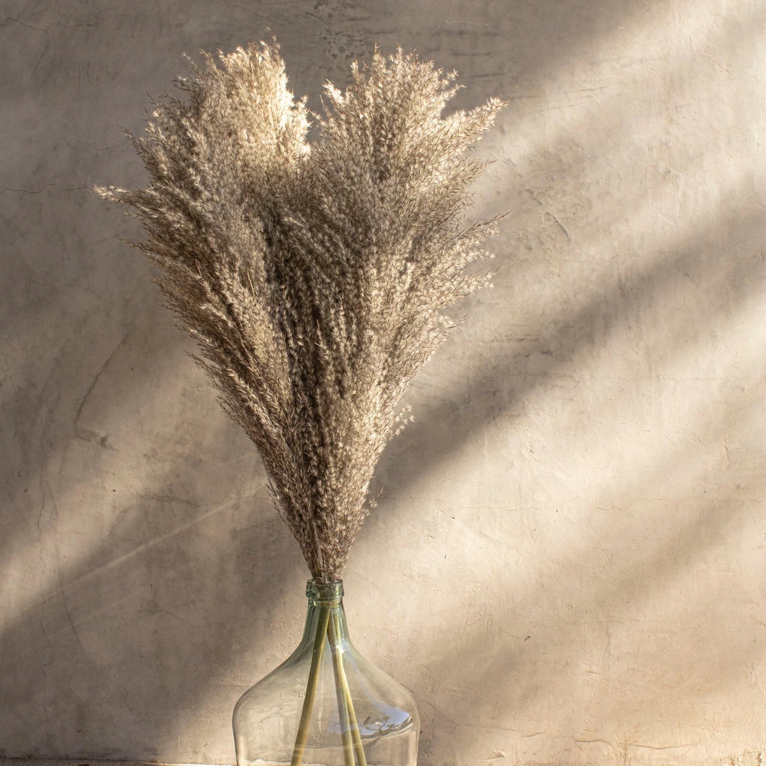 Our natural Pampas Grass adds texture and height to any space. Grass will need to be fluffed to obtain maximum fullness. Shedding will occur during this process due to the natural manner of the grass. We recommend fluffing/styling in an outdoor space and spraying your Pampas Grass with hairspray to prevent future shedding. Color and sizes may vary due to the natural unique essence of each Pampas reed.